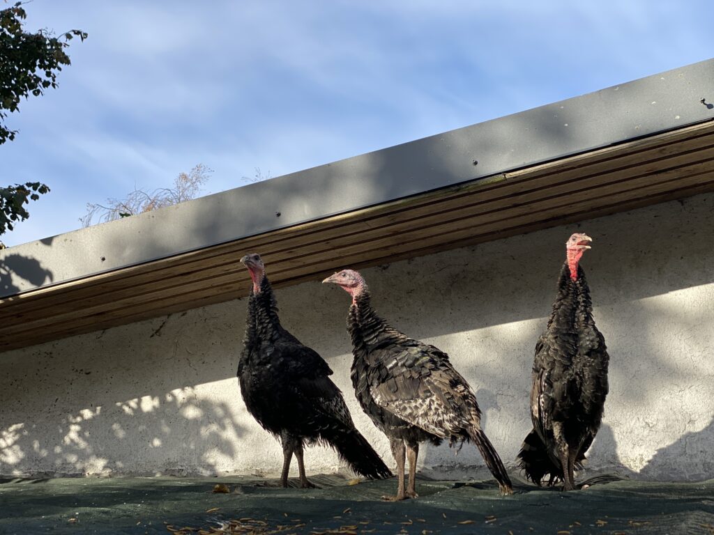 Die Black&Beauties sind gelandet. Nach einem holprigen Start nach Ankunft in der Dunkelheit, haben sie ein Plätzchen zum Ruhen gefunden. Seitdem suchen sich die drei neugierigenruthähne jede Nacht einen neuen Schlafplatz. Tagsüber verbringen sie Zeit mit den streitenden Gänsen, wärmen sich im Stall bei den Schweinen oder schnattern mit den Hühnern in den Gebüschen hinterm Haus. Wir freuen uns, dass IHR da seid!